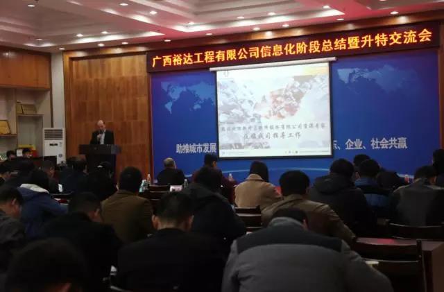 為總結(jié)信息化系統(tǒng)建設(shè)和推進(jìn)升特步伐,3月9日15時(shí),廣西裕達(dá)工程有限公司在集團(tuán)七樓大會(huì)議室召開了信息化階段總結(jié)暨升特交流會(huì),集團(tuán)高層領(lǐng)導(dǎo)出席了會(huì)議,集團(tuán)六中心主管以上、各項(xiàng)目部中層副職以上管理人員及項(xiàng)目部專兼職信息管理員、工程公司全體員工參加了會(huì)議,南寧公司、武宣公司項(xiàng)目部及相關(guān)人員通過視頻會(huì)議參加本次交流會(huì)。 會(huì)上,集團(tuán)鄧亞保總裁就廣西裕達(dá)工程有限公司升特及信息化建設(shè)工作作了重要指示,提出了工程公司必須在5月中旬前向住建部提交申報(bào)材料的要求;工程公司權(quán)龍??偨?jīng)理就工程公司升特及信息化建設(shè)階段性工作做了總結(jié),并部署了今后的升特工作。杭州新中大總部一升特資深專家李伯鳴總工到會(huì)議現(xiàn)場(chǎng)就企業(yè)資質(zhì)一升特的資信能力、人員配置、科技水平、工程業(yè)績(jī)等方面的指標(biāo)做了解釋,對(duì)我司目前信息化建設(shè)成效予以認(rèn)可,并和參會(huì)人員進(jìn)行了升特及信息化相關(guān)交流。