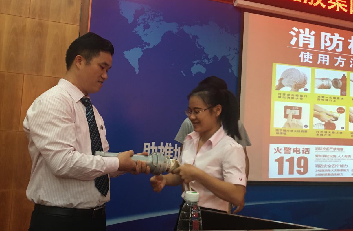 授課過程中,石經(jīng)理首先對消防安全知識做了細致的講解,著重介紹火災(zāi)的危害、學(xué)習(xí)消防知識的好處、單位消防安全“四個能力建設(shè)”以及滅火器材的使用方法等,使大家深刻認識到掌握消防知識技能的重要性。隨后,石經(jīng)理通過現(xiàn)場互動,將理論和實踐相結(jié)合,讓學(xué)員們上臺具體演示了滅火器和消防栓的使用步驟,加深了學(xué)員們對消防自救器材的印象,以避免在火災(zāi)發(fā)生時造成更大的危害。最后,石經(jīng)理通過現(xiàn)場答疑,一一解答了學(xué)員們?nèi)粘9ぷ魃钪袑ο乐R的困惑。