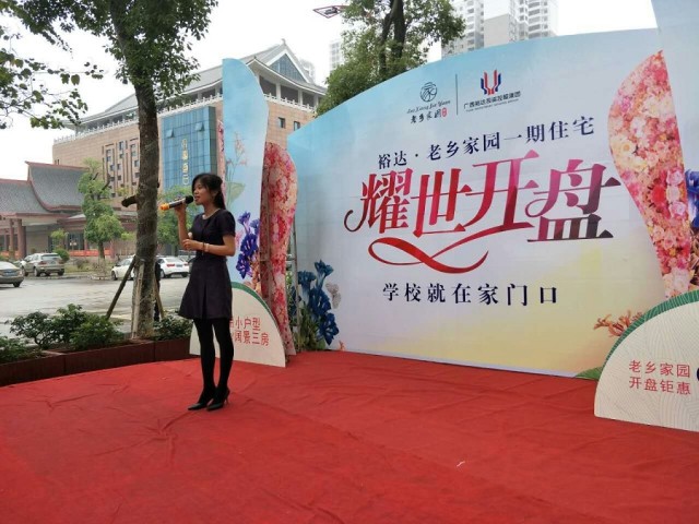 5月20日上午9點(diǎn)30分,裕達(dá)·老鄉(xiāng)家園一期住宅盛大開(kāi)盤(pán)。 開(kāi)盤(pán)當(dāng)天,為感恩回饋客戶(hù),入場(chǎng)客戶(hù)不僅贈(zèng)送精美小禮品和糕點(diǎn),舞臺(tái)現(xiàn)場(chǎng)還準(zhǔn)備了豐富的節(jié)目表演和幸運(yùn)抽大獎(jiǎng)活動(dòng)。雖然天公不作美,下起了小雨,卻絲毫不能阻擋客戶(hù)們購(gòu)房的熱情!早上8點(diǎn),已經(jīng)開(kāi)始有客戶(hù)陸陸續(xù)續(xù)進(jìn)場(chǎng)。上午9點(diǎn)半,開(kāi)盤(pán)舞臺(tái)活動(dòng)正式開(kāi)始。主持人宣講項(xiàng)目信息后由集團(tuán)總裁助理莫麗歡女士上臺(tái)致辭,宣布活動(dòng)正式開(kāi)始。