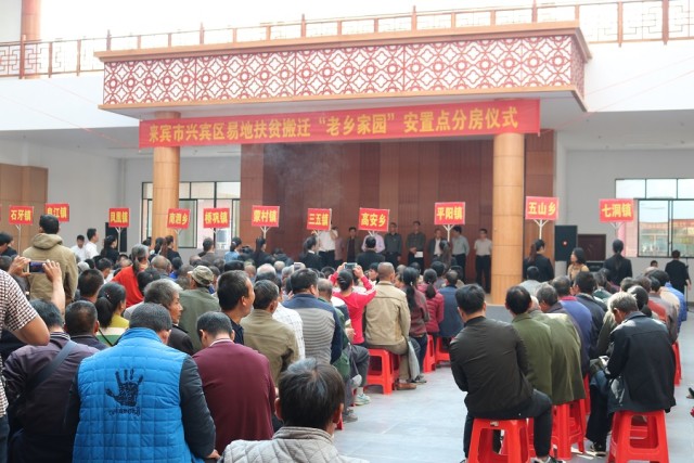 此次分房儀式標志著興賓區(qū)將有一批群眾將搬遷農(nóng)村生活地,融入城市,實現(xiàn)脫貧致富。選定在城南區(qū)“老鄉(xiāng)家園”安置點進行扶貧搬遷安置,主要是依托市區(qū)的就業(yè)優(yōu)勢,周邊完善的就學、醫(yī)療、文化等基礎設施,為搬遷群眾創(chuàng)造一個良好的就業(yè)環(huán)境和生活環(huán)境。據(jù)悉,“老鄉(xiāng)家園”安置房將于2018年初全部完成交付。