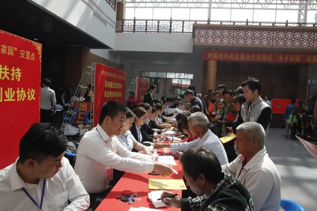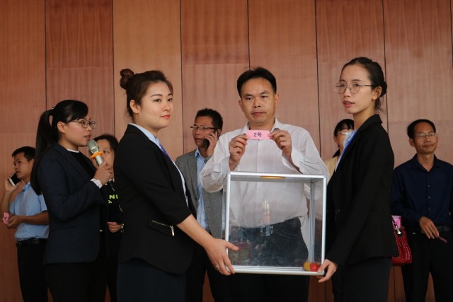 在工人員宣讀抽簽分房流程后,開始抽簽分房。首先由各鄉(xiāng)鎮(zhèn)領導代表以鄉(xiāng)鎮(zhèn)為單位抽簽確定貧困戶選房順序,再由貧困戶逐戶進行抽簽選房并確認。當天,經(jīng)過核驗材料、抽房號、登記信息、簽訂合同等一系列程序后,參加此次來賓市興賓區(qū)易地扶貧搬遷“老鄉(xiāng)家園”安置點分房儀式的455戶貧困戶,除36戶因材料核驗未通過外,419戶都抽到了新房。除抽簽分房外,當天,就業(yè)服務中心還與每戶貧困戶簽訂了就業(yè)培訓協(xié)議,興賓區(qū)工管委領導與貧困戶簽訂幫扶協(xié)議。