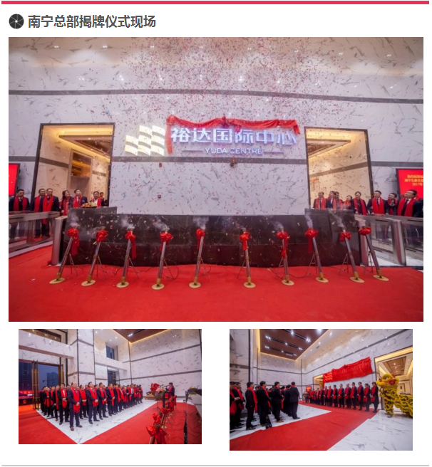 2017年12月28日,廣西裕達(dá)投資控股集團(tuán)迎來了13年發(fā)展史上的又一新里程、新起點(diǎn)——集團(tuán)總部順利進(jìn)駐至南寧市五象新區(qū)總部基地裕達(dá)國際中心,開啟了集團(tuán)發(fā)展的新時(shí)代。上午7點(diǎn)38分,集團(tuán)總部遷入裕達(dá)國際中心儀式正式啟動(dòng),集團(tuán)下屬各子分公司、各中心、各部門代表及戰(zhàn)略合作伙伴200多人共同見證了這一歷史性時(shí)刻。這代表著裕達(dá)集團(tuán)總部正式從來賓搬遷至作為北部灣城市經(jīng)濟(jì)圈核心城市的南寧,推動(dòng)了裕達(dá)集團(tuán)的發(fā)展邁上了新臺(tái)階。