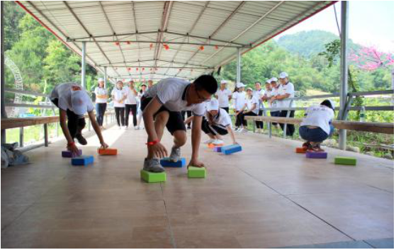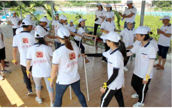第三個游戲移行換位,主要培養(yǎng)了團(tuán)結(jié)一致、克服困難、協(xié)調(diào)能力增進(jìn)隊員間相互信任和理解的團(tuán)隊精神。