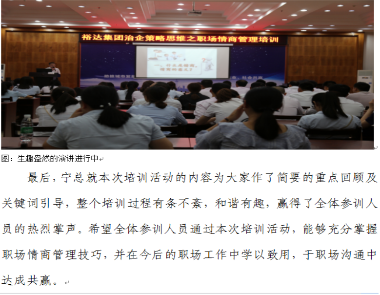 裕達集團治企策略思維之職場情商管理培訓(xùn)成功開展