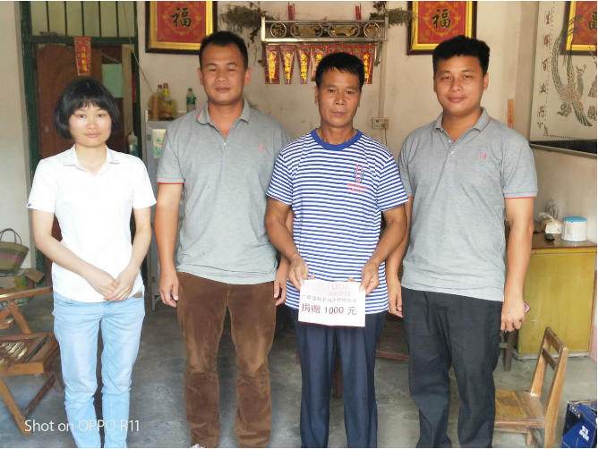 “我們代表公司來慰問你們,希望能幫助你們渡過難關(guān),早日戰(zhàn)勝病魔……”近日,盛銘公司總經(jīng)理助理黃韋康、生產(chǎn)主管韋武大等4人前往陶鄧鄉(xiāng)川山村,看望盛銘公司員工劉敏輝病重的母親,并送上了1000元愛心款和慰問品。