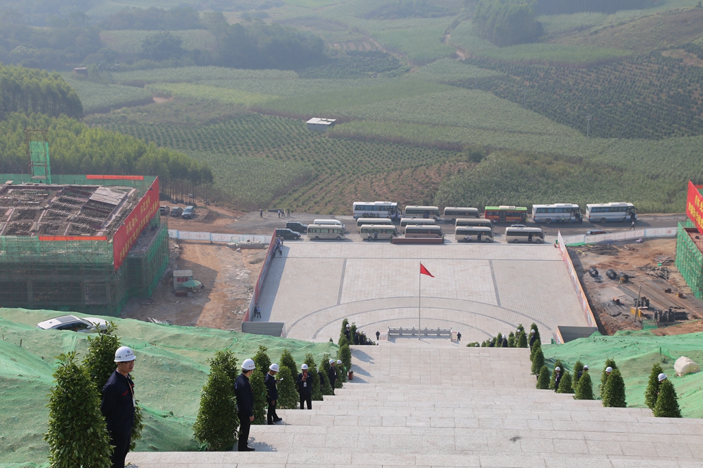 來賓市烈士陵園項目位于來賓北站東北方向約7公里處,項目總建筑面積76106平方米(約114.2畝),整個工程由建筑、市政道路、景觀等部分組成,工程包括紀念碑廣場、大臺階(416步臺階)、集散廣場、業(yè)務綜合樓、革命英雄紀念館、革命文化展館等。烈士陵園設計布局以軸線對稱為鮮明特色,突出表現(xiàn)永垂不朽的崇高革命精神。