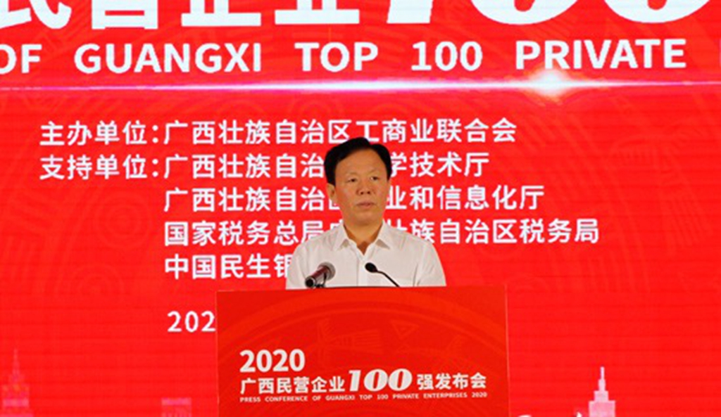7月31日下午,2020廣西民營企業(yè)100強發(fā)布會在南寧沃頓國際大酒店舉行,發(fā)布會認真貫徹落實習近平總書記在企業(yè)家座談會上發(fā)表的重要講話精神,公布了廣西民營經濟發(fā)展取得的階段性成果,自治區(qū)黨委常委、統(tǒng)戰(zhàn)部部長、自治區(qū)非公經濟領導小組副組長徐紹川,自治區(qū)人大常委會副主任楊靜華,自治區(qū)人民政府副主席、非公經濟領導小組副組長費志榮,自治區(qū)政協(xié)副主席、自治區(qū)工商聯(lián)主席磨長英,自治區(qū)人民政府副秘書長、一級巡視員黃植建出席會議。會議由自治區(qū)黨委統(tǒng)戰(zhàn)部副部長、自治區(qū)工商聯(lián)黨組書記熊春寒主持,我集團董事長鄧亞保應邀出席。
