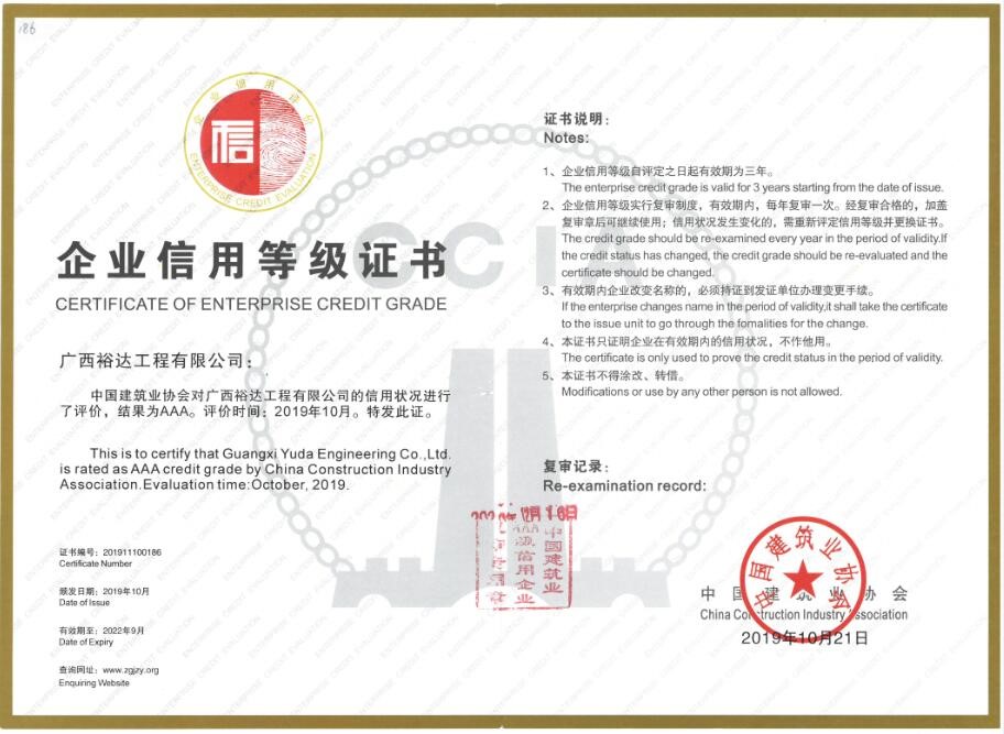 近日,公司順利通過中國建筑業(yè)協(xié)會“全國建筑業(yè)AAA級信用企業(yè)”復審,公司再獲“AAA級信用企業(yè)”榮譽稱號。