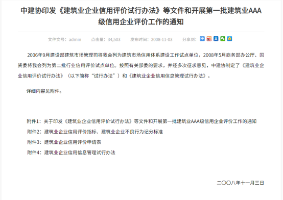 建筑企業(yè)信用等級證書,由中國建筑業(yè)協(xié)會通過各項指標(biāo)對企業(yè)進(jìn)行綜合評估出示的信用等級報告,企業(yè)信用等級分為AAA(信用很好)、AA、A、B、C三等五級,實行動態(tài)管理,獲證后前2年每年進(jìn)行復(fù)審,每3年進(jìn)行一次復(fù)評。既是企業(yè)的一種榮譽(yù),也在許多商業(yè)活動中能夠廣泛應(yīng)用。
