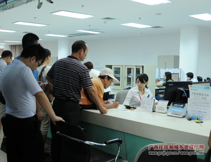 在南寧市住房公積金區(qū)直分中心現(xiàn)場(chǎng),許多職工正排隊(duì)提取公積金