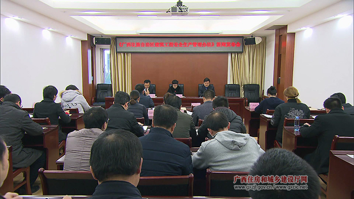 2月7日,自治區(qū)法制辦公室、自治區(qū)住房城鄉(xiāng)建設(shè)廳在南寧召開《廣西壯族自治區(qū)建筑工程安全生產(chǎn)管理辦法》(以下簡稱《辦法》)新聞發(fā)布會(huì)。新出臺(tái)的《辦法》將于2018年3月1日起施行。自治區(qū)法制辦公室副主任潘東、自治區(qū)住房城鄉(xiāng)建設(shè)廳副廳長楊綠峰、副巡視員莫蘭新出席發(fā)布會(huì)并講話。
