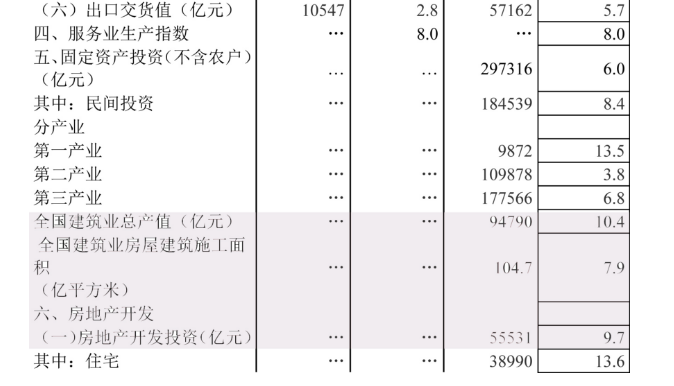 房屋新開工面積95817萬平方米,增長11.8%,增速提高1個百分點。其中,住宅新開工面積70611萬平方米,增長15.0%。房屋竣工面積37131萬平方米,下降10.6%,降幅擴大0.5個百分點。其中,住宅竣工面積25962萬平方米,下降12.8%。