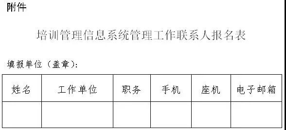 附件:培訓(xùn)管理信息系統(tǒng)管理工作聯(lián)系人報名表
