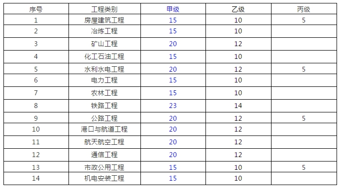 (3)注冊監(jiān)理工程師、注冊造價工程師、一級注冊建造師、一級注冊建筑師、一級注冊結構工程師或者其它勘察設計注冊工程師合計不少于15人次。其中,相應專業(yè)注冊監(jiān)理工程師不少于《專業(yè)資質注冊監(jiān)理工程師人數(shù)配備表》(附表1)中要求配備的人數(shù),注冊造價工程師不少于1人。