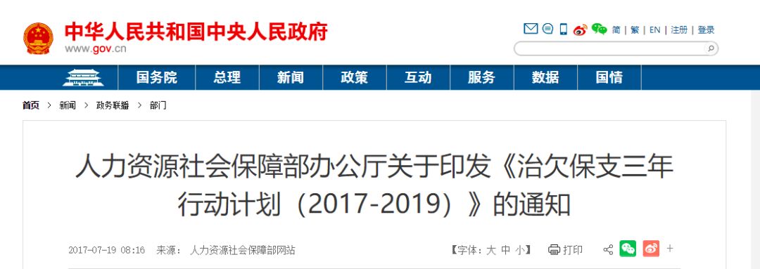 人力資源社會(huì)保障部辦公廳關(guān)于印發(fā)《治欠保支三年行動(dòng)計(jì)劃(2017-2019)》的通知