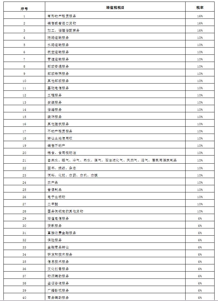 附:目前增值稅稅率表