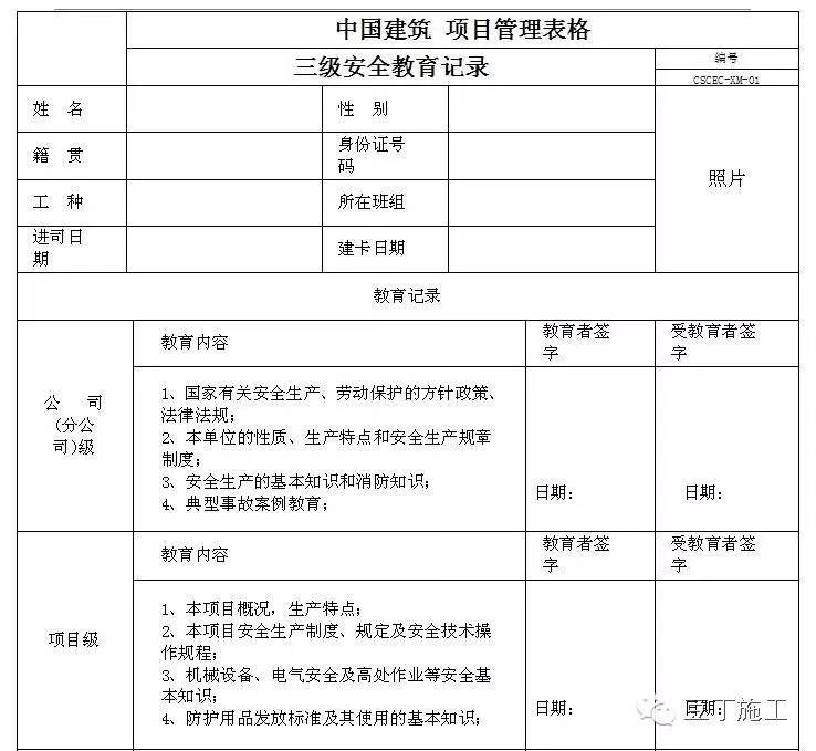 6、執(zhí)行入場(chǎng)教育、現(xiàn)場(chǎng)教育、崗位教育等三級(jí)教育。