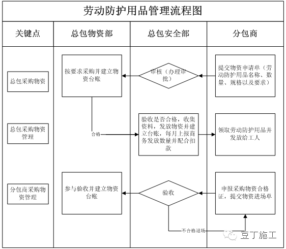 1、總包采購(gòu)勞動(dòng)防護(hù)用品:安全帽、安全鞋、工作服、反光背心。以上由分包商申請(qǐng),總包統(tǒng)一采購(gòu)發(fā)放,費(fèi)用從工程款中扣除。