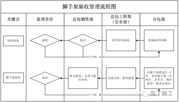 6、對(duì)于同一腳手架由多個(gè)施工單位共同使用時(shí),總包方必須明確腳手架的管理單位;