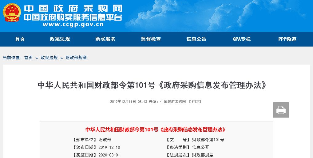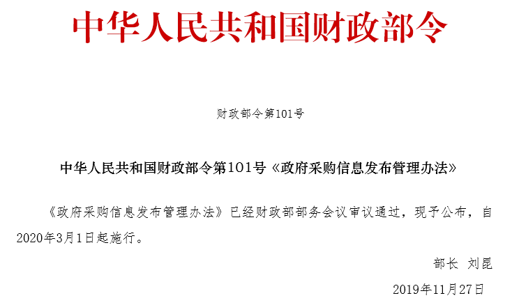 第二十一條 本辦法自2020年3月1日起施行。財政部2004年9月11日頒布實施的《政府采購信息公告管理辦法》(財政部令第19號)同時廢止。
