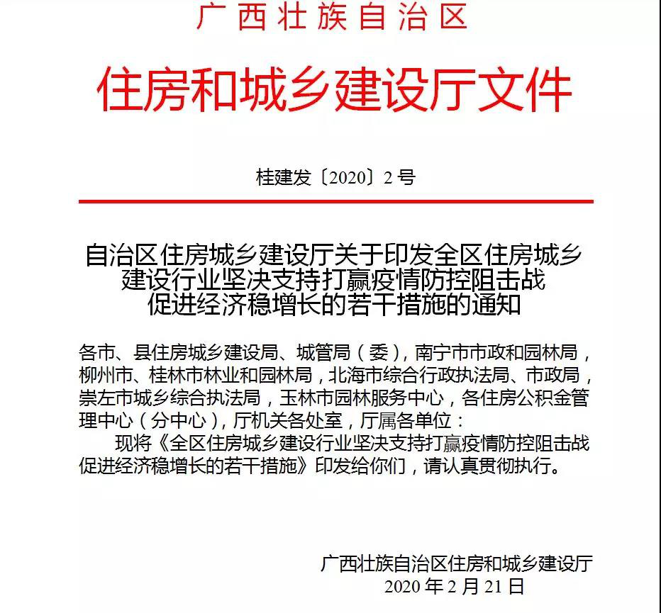 2月21日,自治區(qū)住房城鄉(xiāng)建設(shè)廳發(fā)布《關(guān)于印發(fā)全區(qū)住房城鄉(xiāng)建設(shè)行業(yè)堅決支持打贏疫情防控阻擊戰(zhàn) 促進經(jīng)濟穩(wěn)增長的若干措施的通知》,包含四大項、23條具體措施,具體如下:
