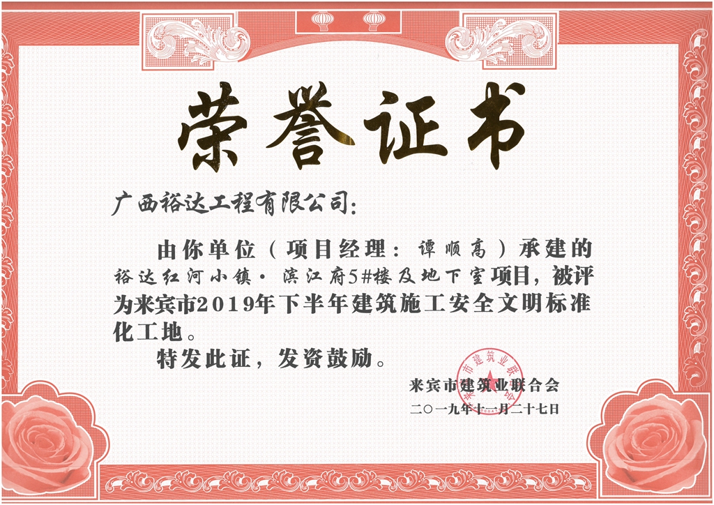 下一篇:裕達天悅城·明珠花園13#樓、15#樓及地下室項目被評為來賓市2019年下半年建筑施工安全文明標準化工地(項目經理:石才升)